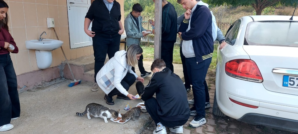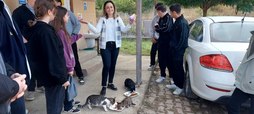 Bu önemli günde, okulumuz da bu sorumluluğa ortak oldu. Öğretmenlerimiz ve öğrencilerimiz, merhamet ve sevgi dolu yürekleriyle, okul bahçemizin sadık sakinleri olan kedi ve köpek dostlarımızı unutmadi; onların karınlarını doyurarak, küçük ama anlamlı bir dayanışma örneği sergilediler.
